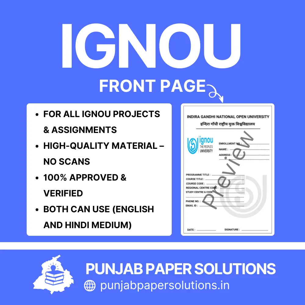 Get your IGNOU Front Page For Project & Assignments 2025 instantly from punjabpapersolutions.in. Our PDFs are ready-to-use, professionally formatted, and fully compliant with IGNOU standards. Ensure your project and assignment submissions are accurate, professional, and evaluation-ready.